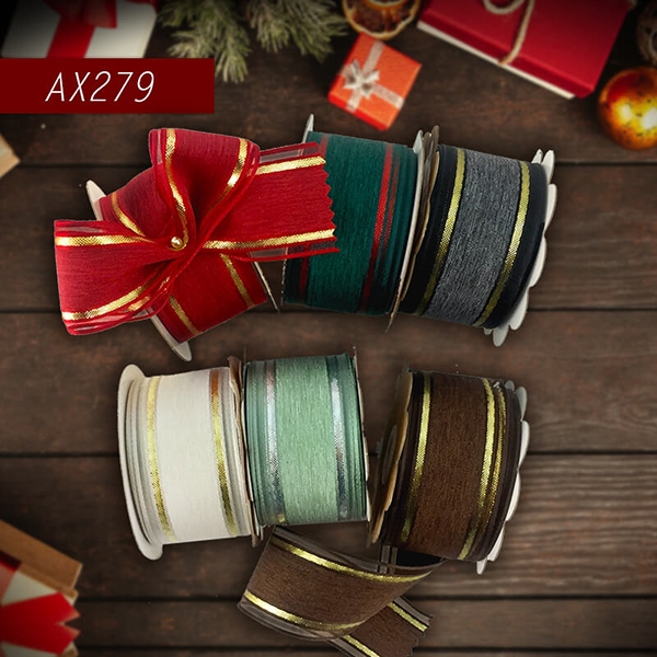 Christmas Ribbon- Christmas Two Metallic Stripes Ribbon