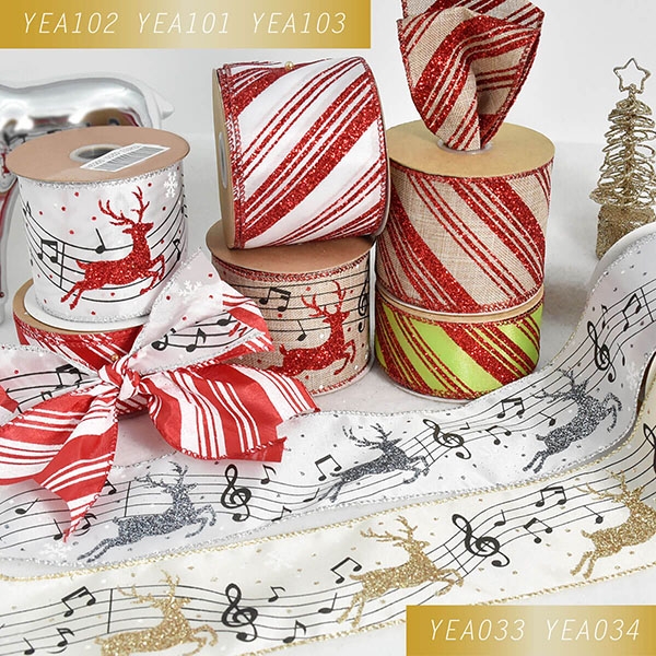 Product Name : Christmas Candy Cane and Deer Ribbon