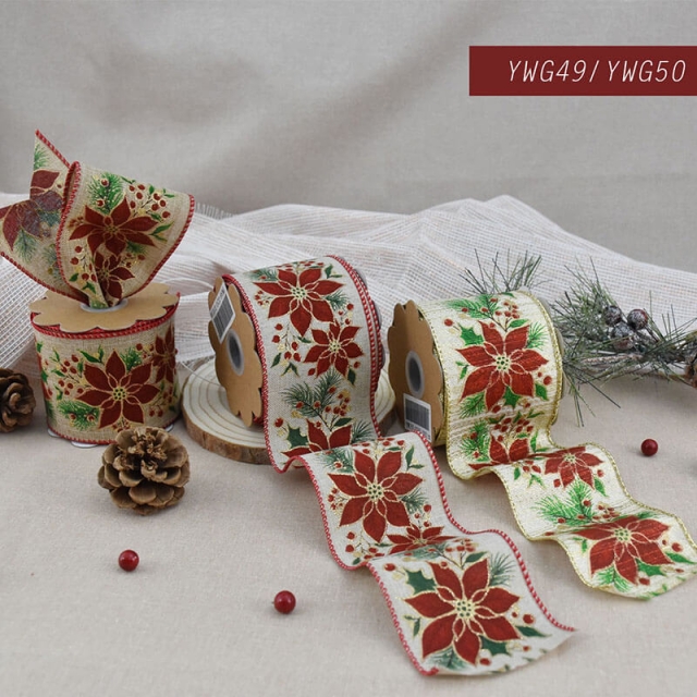 Product Name : Chirstmas Poinsettia Wired Ribbon